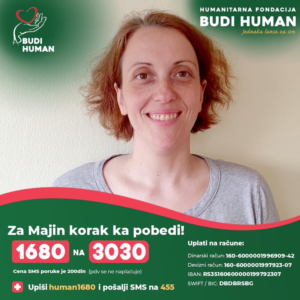 U nedelju, 14. jula na bazenu u Srpskoj Crnji, sa početkom u 21 sat biće organizovan humanitarni koncert za Maju Matin Krstić, kojoj nije moguće dijagnostifikovati bolest u našoj zemlji, a njena bolest sve više napreduje. Prvi simptomi bolesti javili su se 2023. godine u trudnoći u vidu otežanog hoda, potom i slabosti u rukama i nogama, a nakon porođaja došlo je do progresije. Maja je u kontaktu sa lekarima klinike u Moskvi došla do saznanja da je precizna dijagnostika moguća najsavremenijim aparatima koje ima ova klinika, kao i da je moguće zaustavljanje progresije bolesti primenom HSCT terapije, za šta su joj potrebna značajna finansijska sredstva. Maja je mlada žena, majka, ćerka, sestra i prijateljica kojoj je potrebna naša pomoć. Takođe je korisnik fondacije Budi human sa brojem 1680 na 3030.